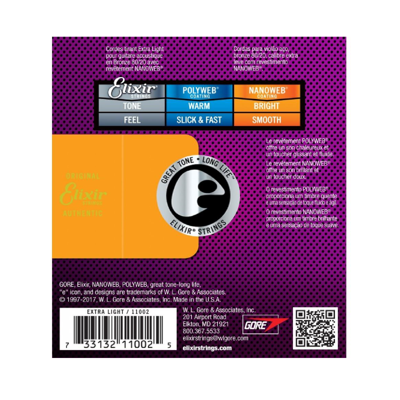 Encordado guitarra acústica Elixir Nanoweb 16027 (11-52)