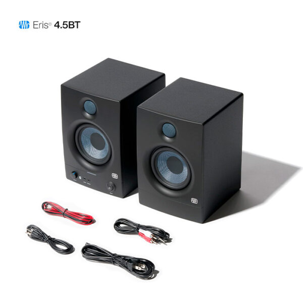 Los PreSonus Eris 4.5BT son monitores de estudio activos diseñados para ofrecer un sonido claro, balanceado y preciso, ideales para producción musical, edición de audio, contenido multimedia y uso doméstico de alta calidad.
