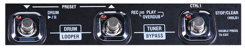 MG-200 tiene 3 interruptores de pie multifuncionales. Puede cambiar los preajustes, controlar la función de tambor y looper utilizando los interruptores » Preajuste ↑ ↓ «. Y tiene un interruptor de pie de control asignable «CTRL 1». Le permite acceder rápidamente a cualquier función como booster, TAP TEMPO o cualquier función seleccionada para activar / desactivar.