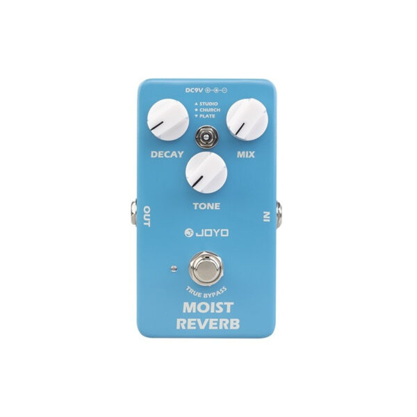 Pedal Reverb para guitarra JOYO JF-20 MOIST REVERB es un pedal de efectos de reverberación digital para guitarra electrica, cuenta con un chip DSP de 32 bits de alto rendimiento. Posee 3 modos de reverberación: Studio, Church & Plate para obtener una gran versatilidad y rango de operación según tu gusto. Las perillas MIX, TONE y DECAY ofrecen una amplitud tonal, logrando diferentes texturas.
