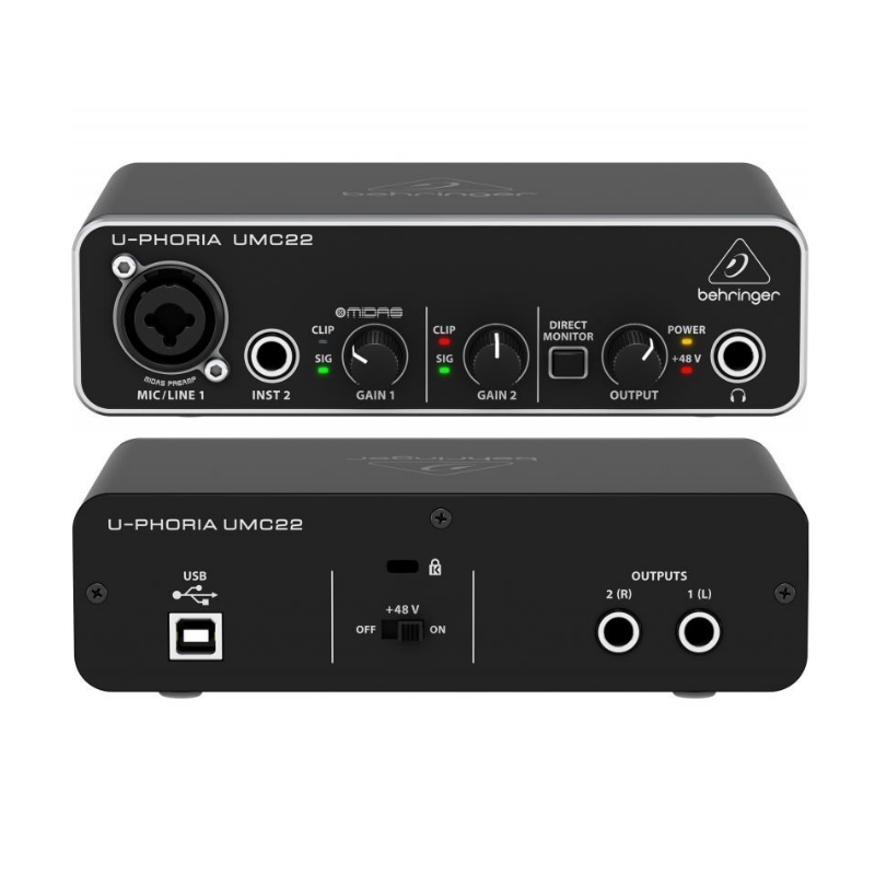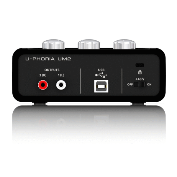 La Behringer U-Phoria UM2 es una interfaz de audio USB para la grabación de voces e instrumentos. Viene con conversores de 48 kHz, lo que permite una grabación y reproducción de alta calidad.