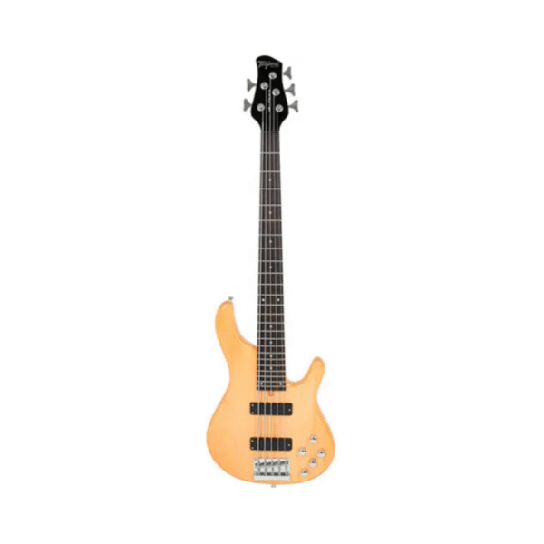 Bajo electrico activo 5 cuerdas Tagima Millenium 5 construido con los siguientes materiales: cuerpo en Basswood, brazo en Arce, diapasón en Technical Wood (Oscuro) con 24 trastes, puente cromado, clavijeros cromados y Pick Ups 2 Tagima Soup BAR, Controles de Volumen, Balance, Agudos, Medios y Graves, Color Natural.