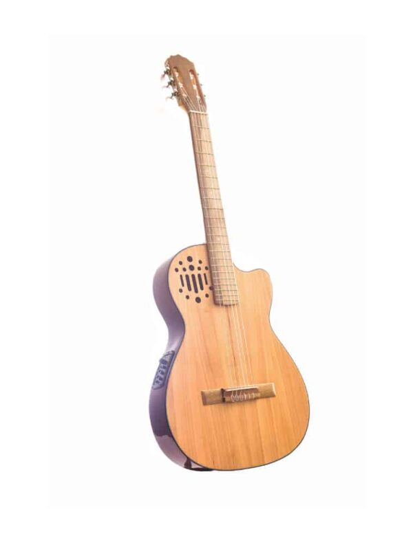 La Guitarra electroacústica Andalucía Slim Pro GB-1, fusiona la nueva y vieja escuela de la lutheria, cuenta con una caja de resonancia de 8.8 cm en cedro y una tapa armónica en pino ciprés, cuidando cada detalle en el manejo de la posición de sus armónicos asegurando así la acústica indicada, ademas cuenta con un sistema de pre amplificado ACTIVO de nuestra marca aliada CHERUB. Cada guitarra esta fabricada en madera 100% maciza, con previo secado de sus piezas para potenciar la acústica de este instrumento, son piezas unicas y cada veta refleja sus vivencias.
